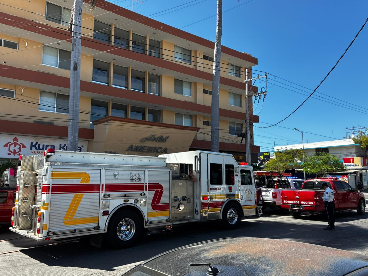 Los Mochis, Sin.- La tarde de este lunes 23 de febrero se registró un conato de incendio en un conocido hotel ubicado en el sector centro de la ciudad de Los Mochis. El incidente generó la rápida movilización de cuerpos de auxilio y autoridades municipales, quienes acudieron para controlar la situación y garantizar la seguridad de los huéspedes.