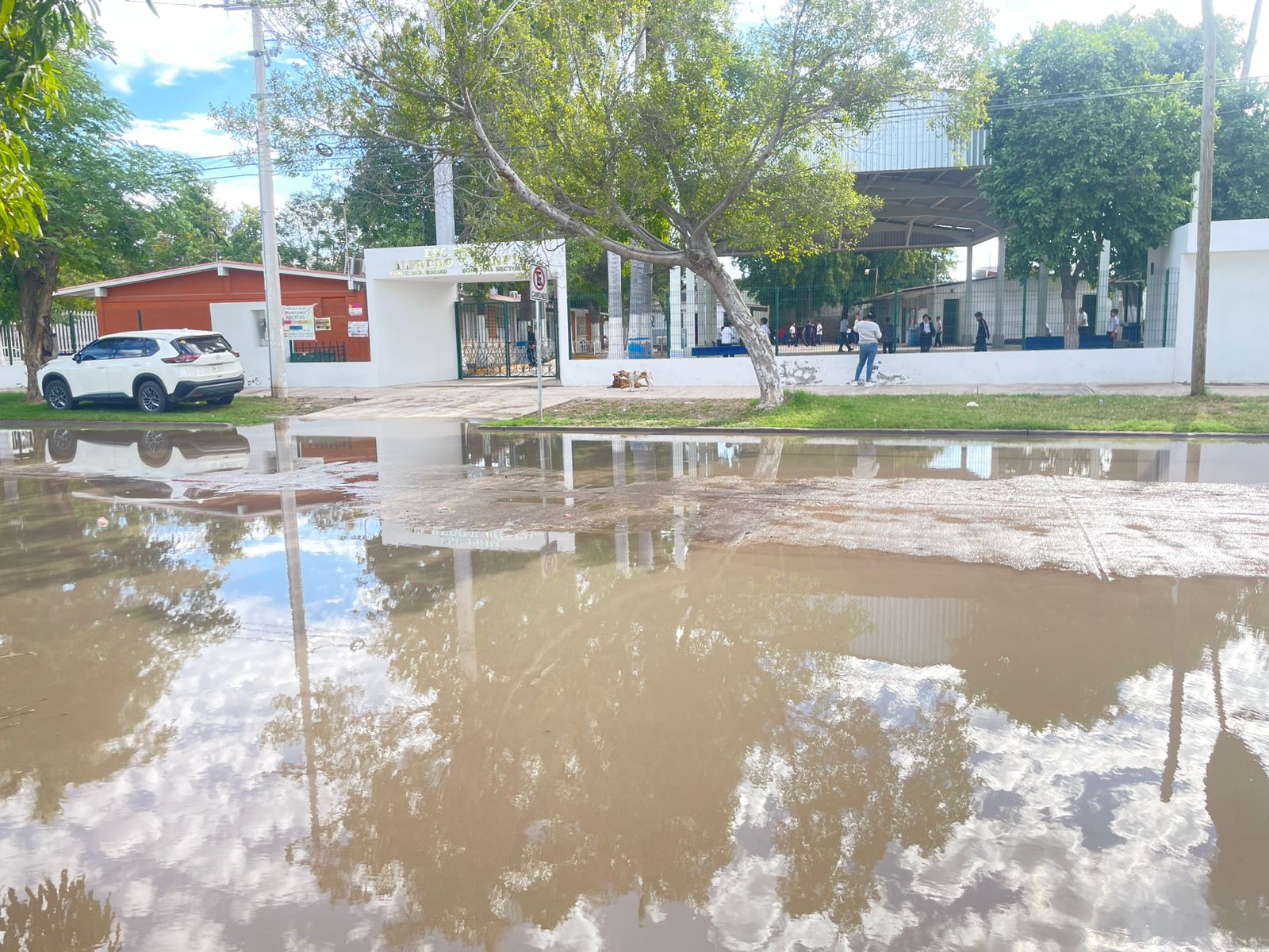 Los Mochis, Sin.- La salud de los niños y niñas de la primaria “Alfredo V Bonfil del oriente de esta ciudad está bajo amenaza por una enorme laguna de aguas negras interminable que tiene su origen en el colapsado sistema de drenaje del lugar.