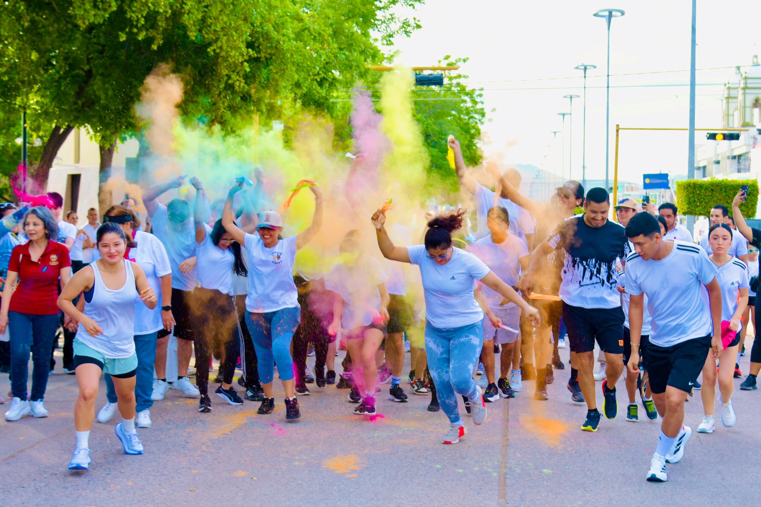 Jóvenes, niños, adultos y familias enteras se activaron físicamente en un evento que destacó por su temática de colores, llenando de alegría y entusiasmo las calles. Además de promover la paz y la prevención de adicciones, la actividad reforzó la unión familiar y la sana convivencia.