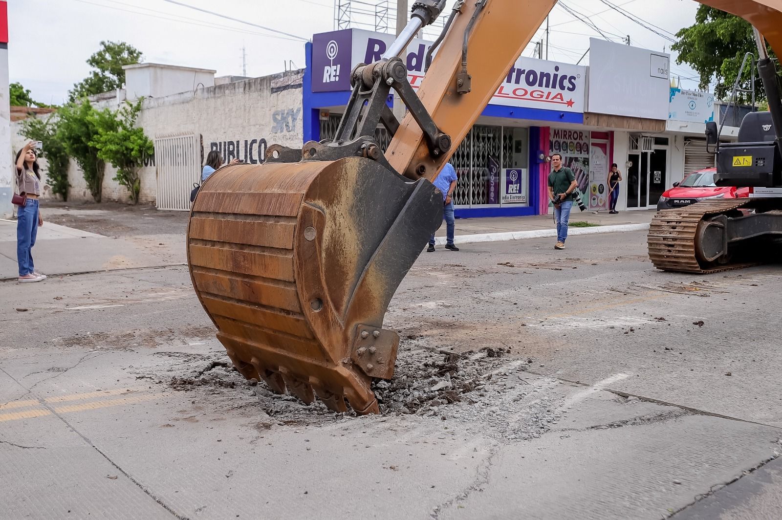 Guasave, Sin.- El director general de Obras y Servicios Públicos Municipales, Rael Rivera Castro, dijo que a dos semanas de que inició la rehabilitación de la calle Cuauhtémoc, ya se demolieron todas las losas del pavimento, se han retirado las guarniciones y se está instalando preventivamente la línea para hacer las interconexiones, sin embargo, reconoció que siguen surgiendo fugas de agua, lo cual ha complicado los trabajos.