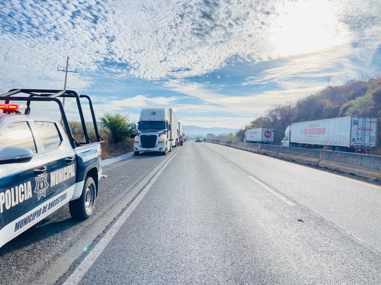 En el kilometro 95+200 Se localizaron tres tráileres dañados, en el kilómetro 85+300 Se encuentran 4 tráileres dañados y otros tres vehículos más frente al Panteón de Campo Plata y otros dos en el Kilómetro 100+250.