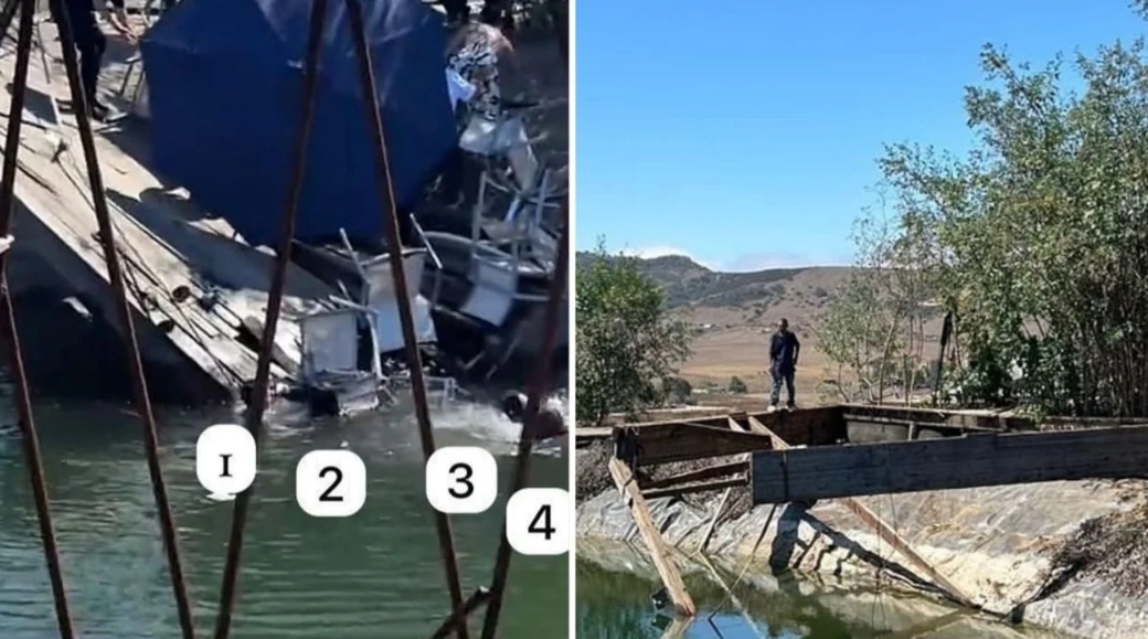 Ensenada, Baja California.- Uno de los muelles volados, considerado entre los principales atractivos de un restaurante ubicado en la Ruta del Vino, en el municipio de Ensenada, Baja California, se desplomó y dejó un saldo de cuatro lesionados, quienes tuvieron que ser rescatados del lago artificial del lugar.