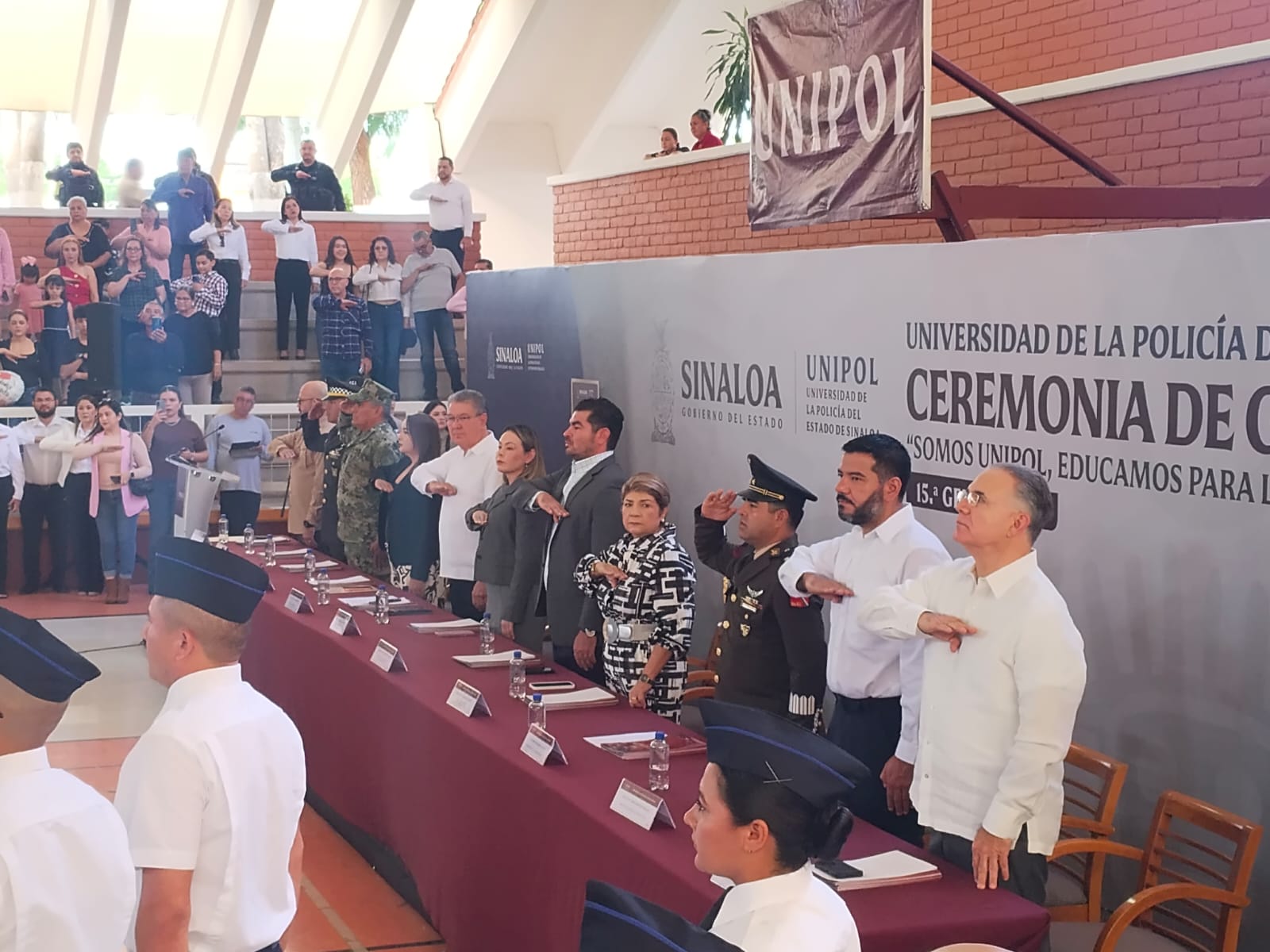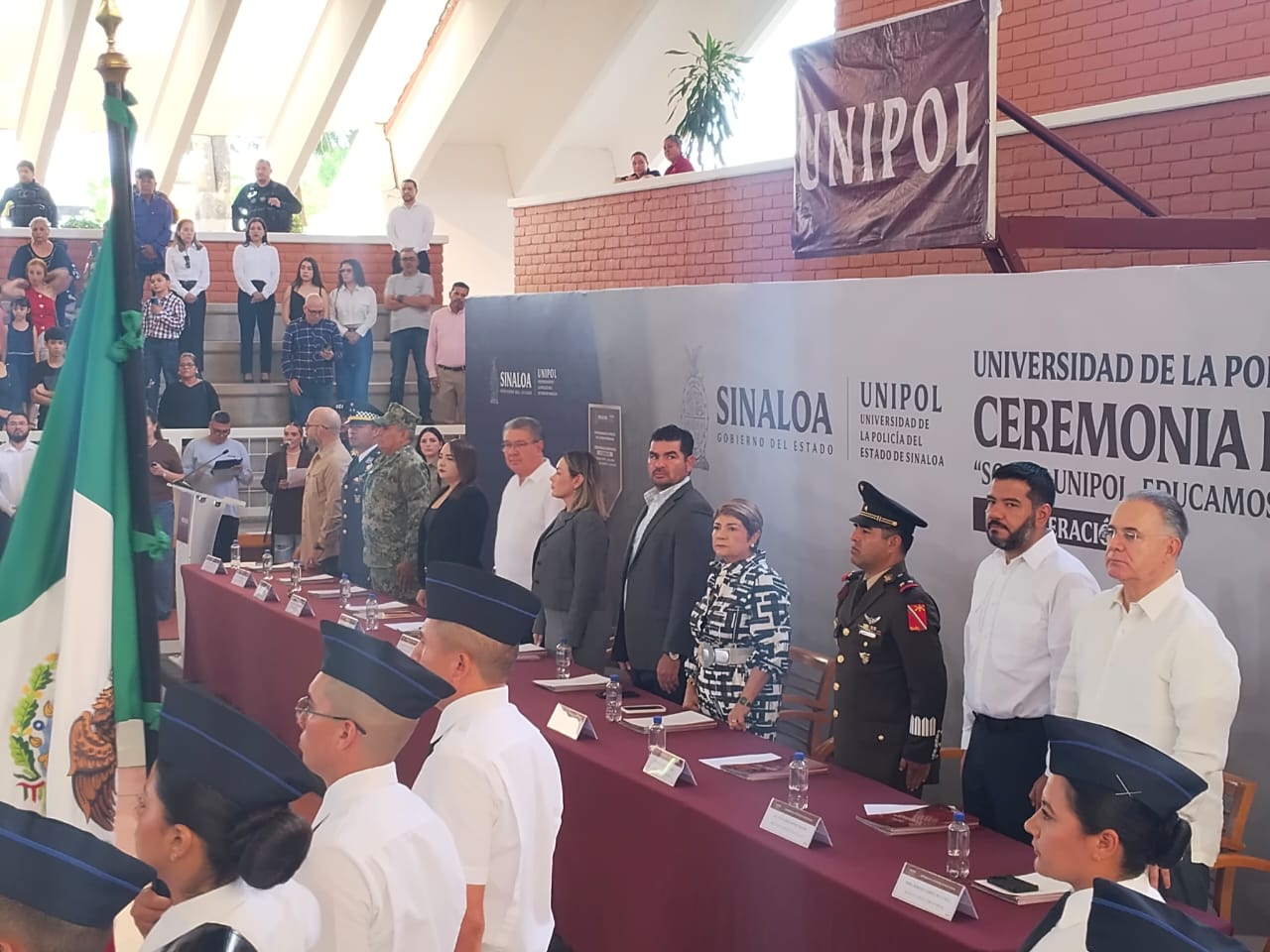 El evento fue encabezado por la secretaria general de gobierno, Yeraldine Bonilla, representante del gobernador del estado, Rubén Rocha Moya, y por José Carlos Álvarez Ortega, rector de la Universidad de la Policía del Estado de Sinaloa.