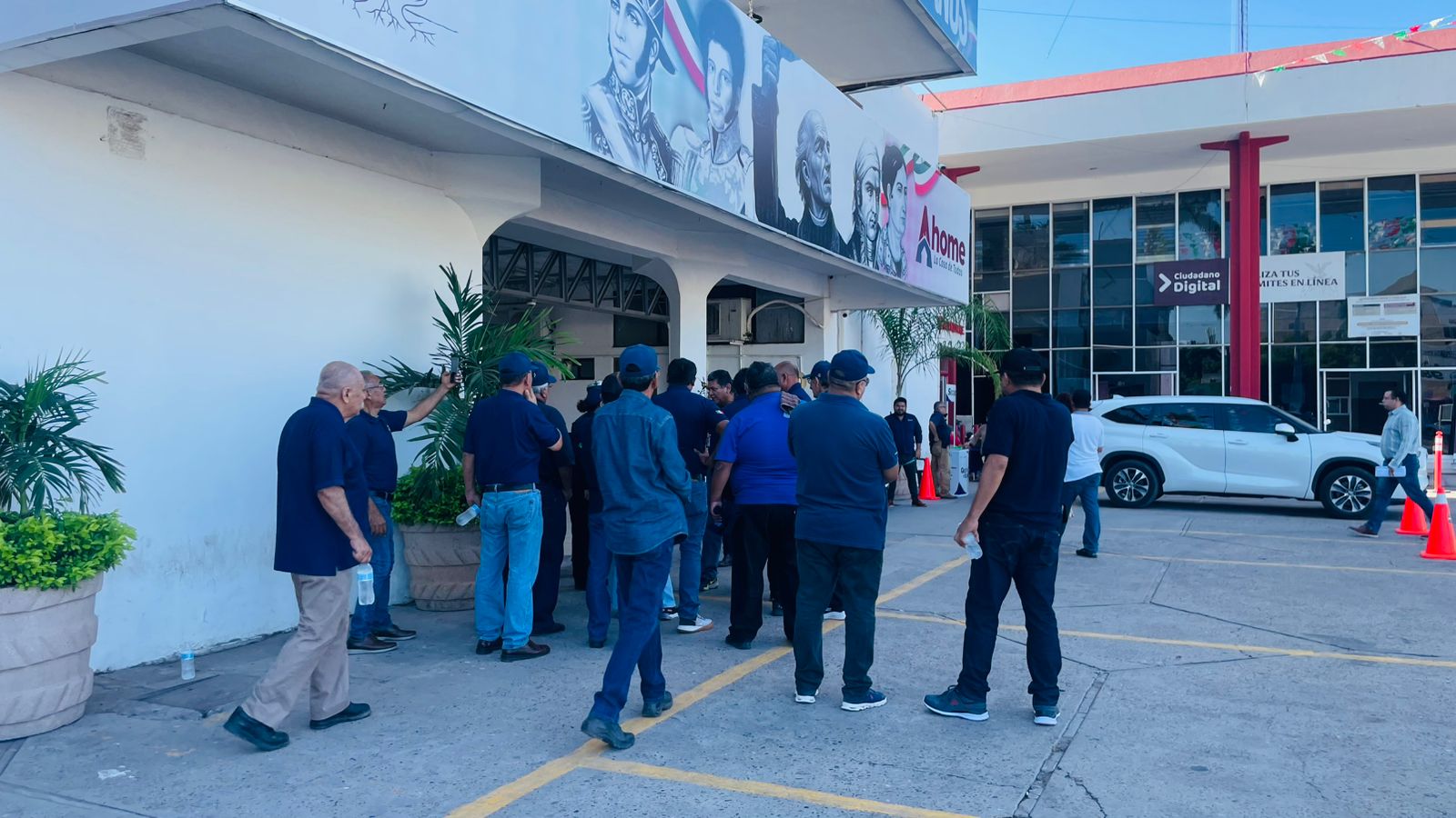 Los Mochis, Sin.- Los llamados Guerreros Unidos, integrado por agentes de policía jubilados y jubiladas, se manifiestan en este momento en Palacio Municipal; han cerrado los accesos y reclaman el depósito de la parte complementaria de un pago pendiente por concepto del quinquenio pendiente.