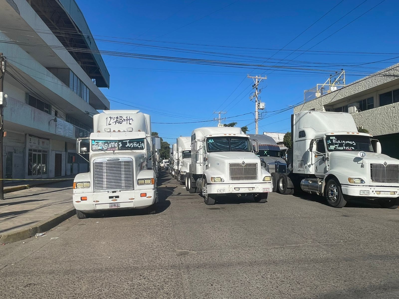 Los Mochis, Sin.– Por segundo día consecutivo, transportistas de carga mantienen el plantón frente a la plaza Caracol, y el bloqueo a las oficinas de la subdelegación del IMSS, en espera de una reunión con la delegación estatal para solventar el tema del cobro por 8 milllones de pesos que les están aplicando.