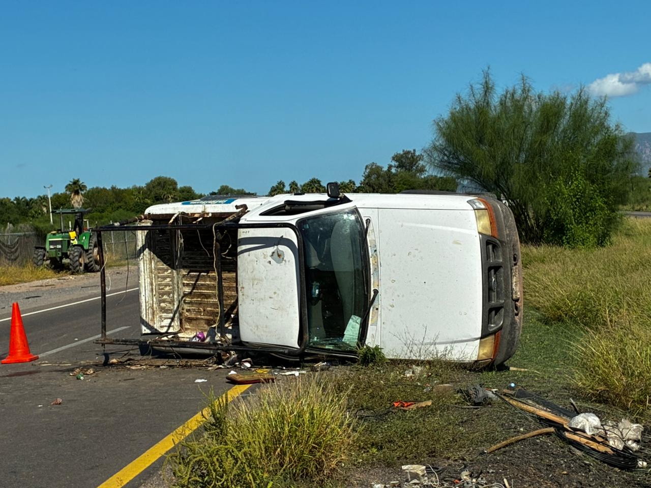 Los Mochis, Sin.- Seis trabajadores resultaron lesionados, cuatro de ellos de gravedad, luego de que la camioneta en la que viajaban volcara sobre la carretera Internacional México-15, al norte de Los Mochis.