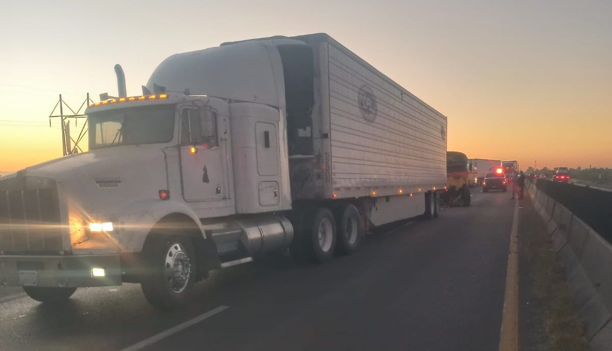 En el lugar localizaron las dos unidades involucradas: un tráiler marca Kenworth, modelo 1993, color blanco, conducido por Juan Manuel Leal, de 54 años, vecino de Batayón, Navolato; así como un camión de transporte de personal marca Internacional, modelo 1993, color amarillo con franjas negras, conducido por Salomé Leal, de 59 años, con domicilio en el campo pesquero El Caracol.