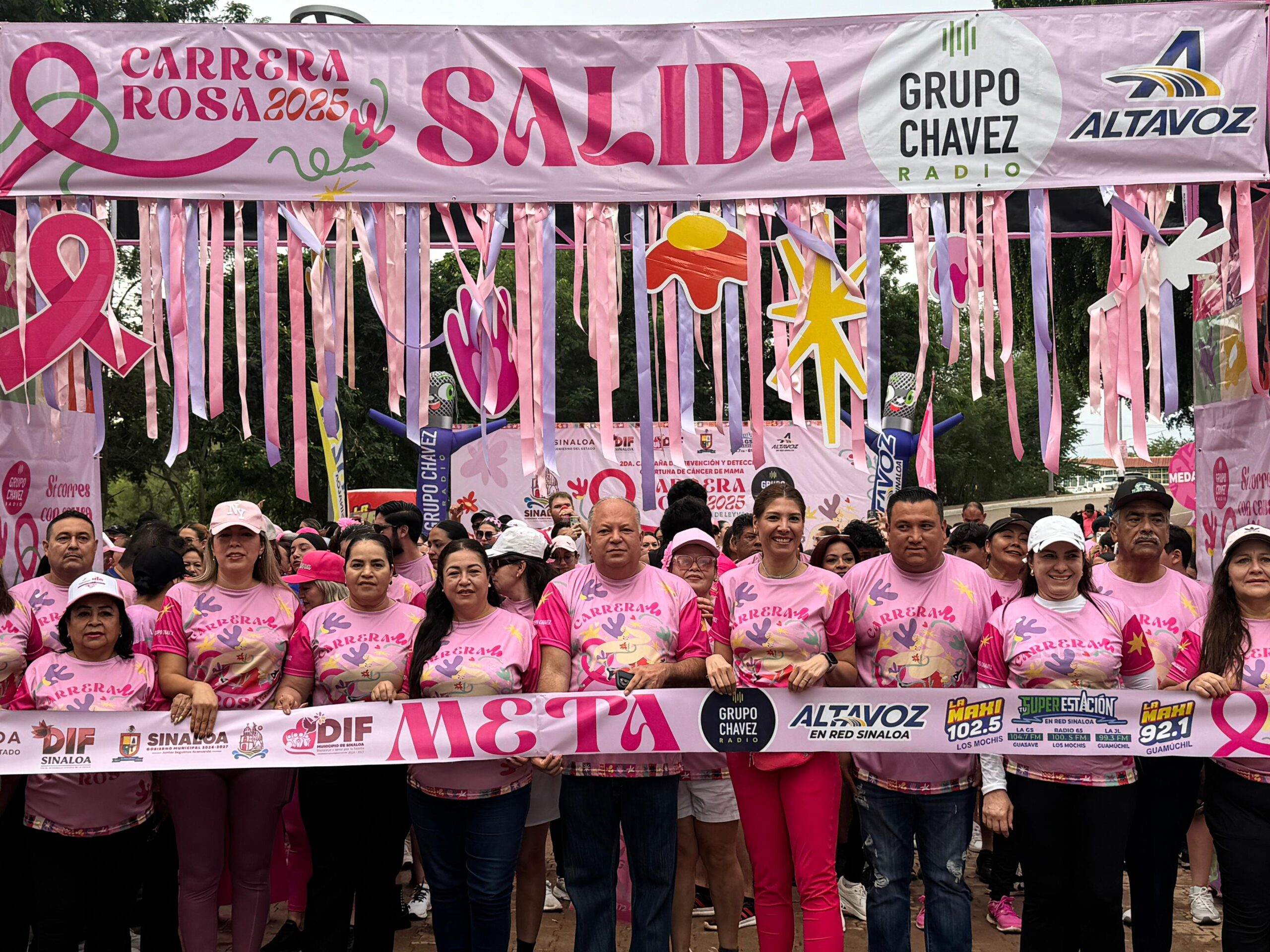Sinaloa, Sin.- Con gran entusiasmo y participación ciudadana se vivió este domingo 12 de octubre la Carrera Rosa 2025 en el malecón de Sinaloa de Leyva, evento organizado por Grupo Chávez Radio en coordinación con el Ayuntamiento, como parte de la campaña de concientización sobre el cáncer de mama “Tócate, Ámate”.