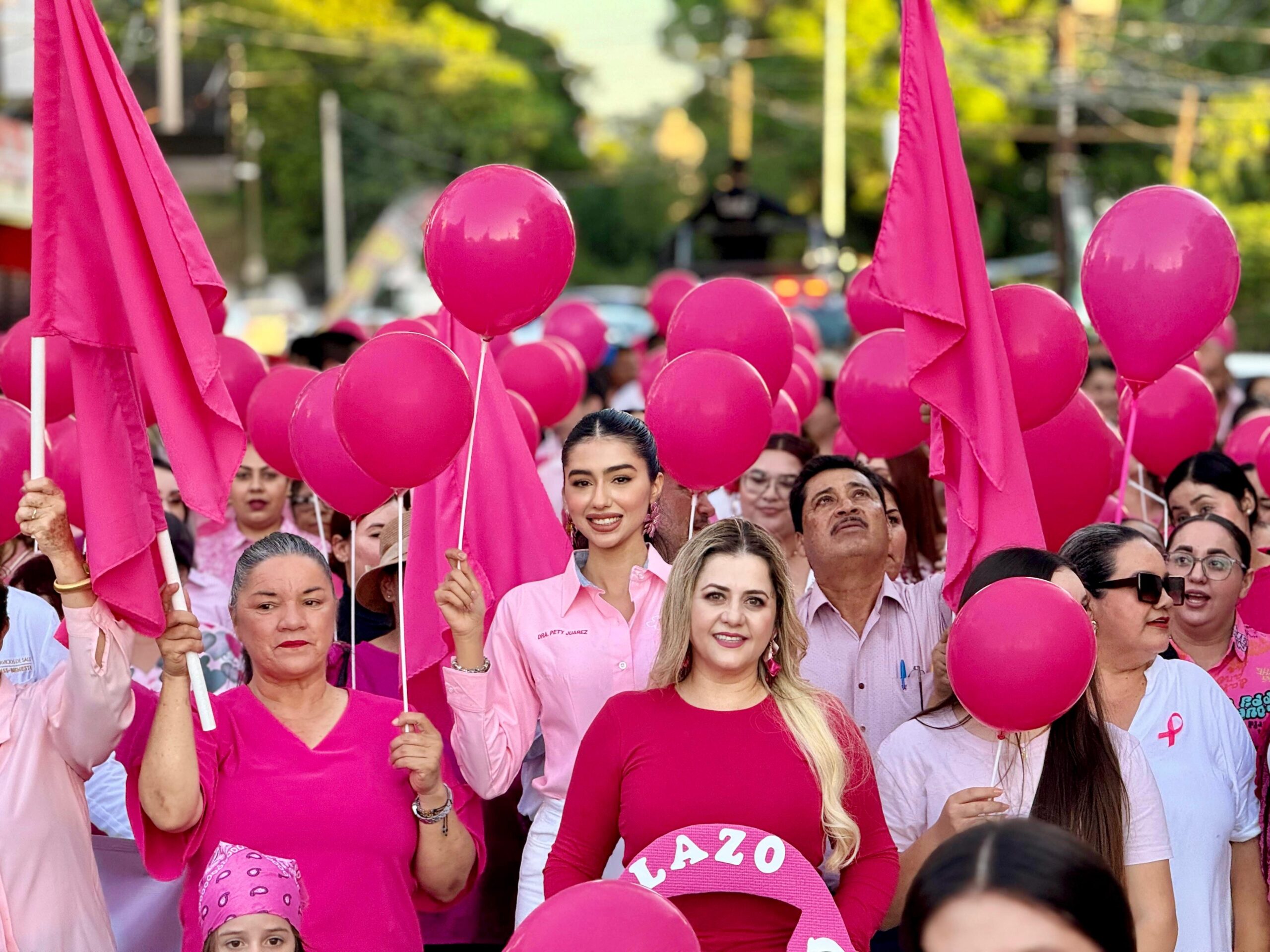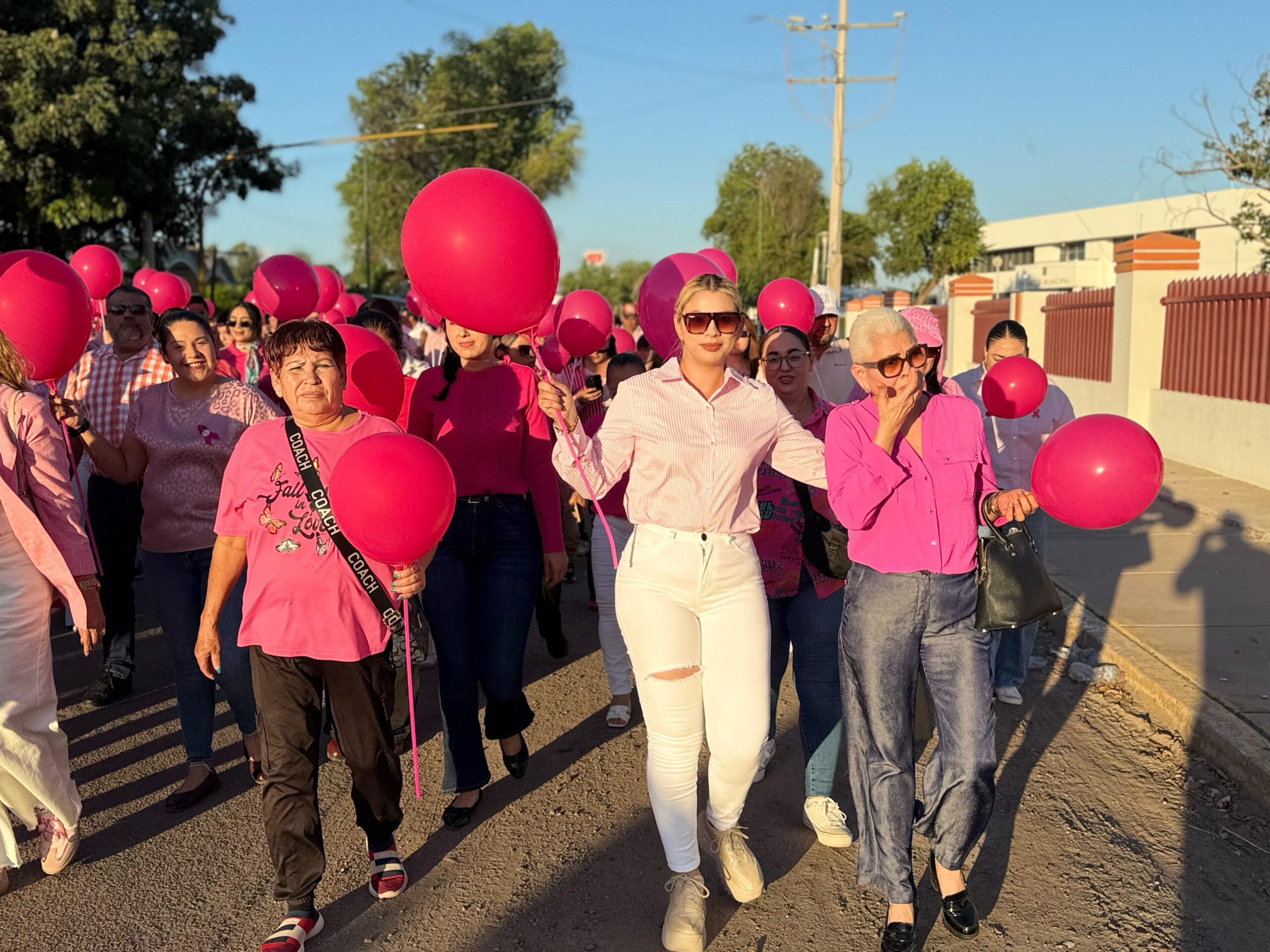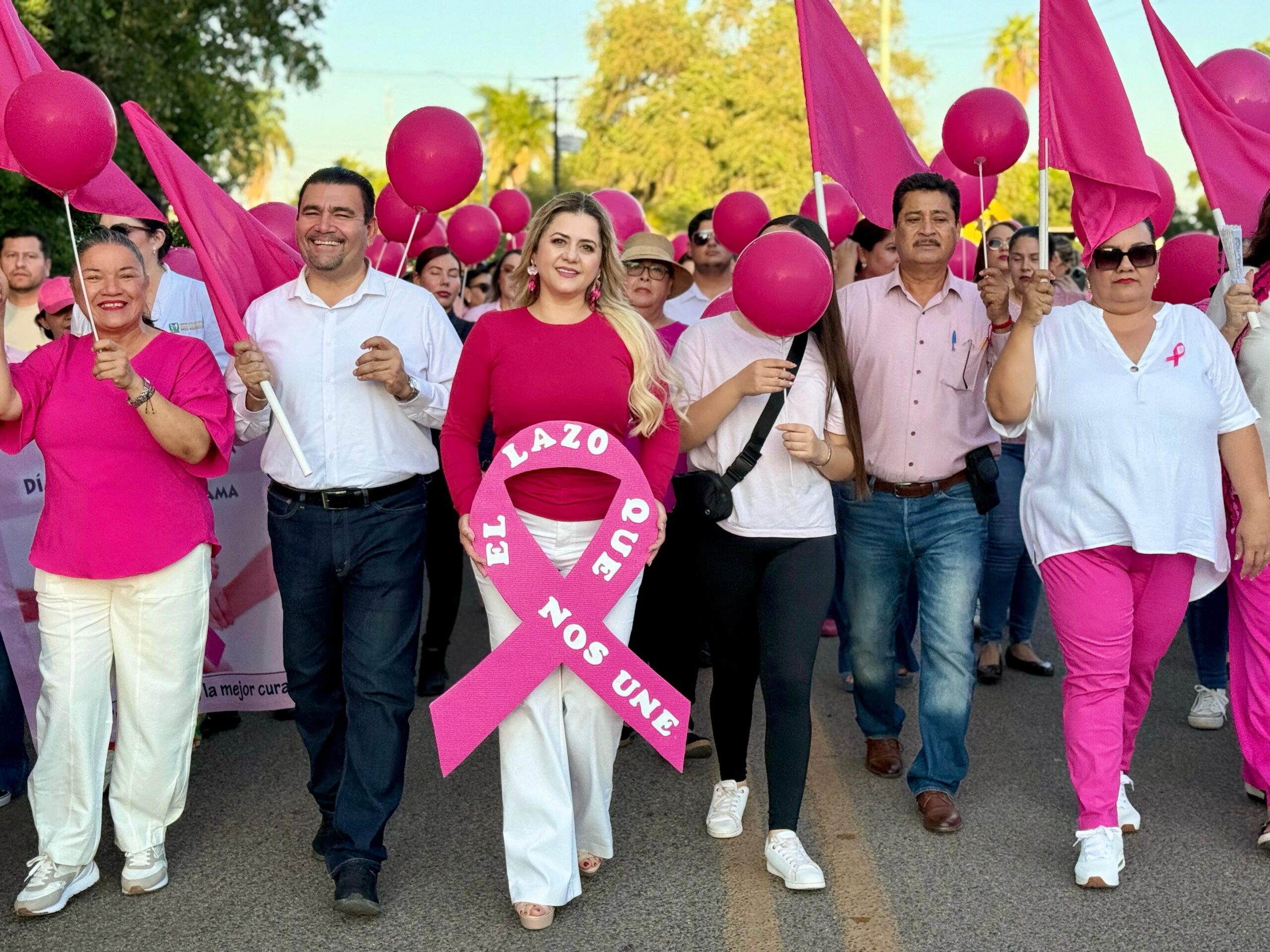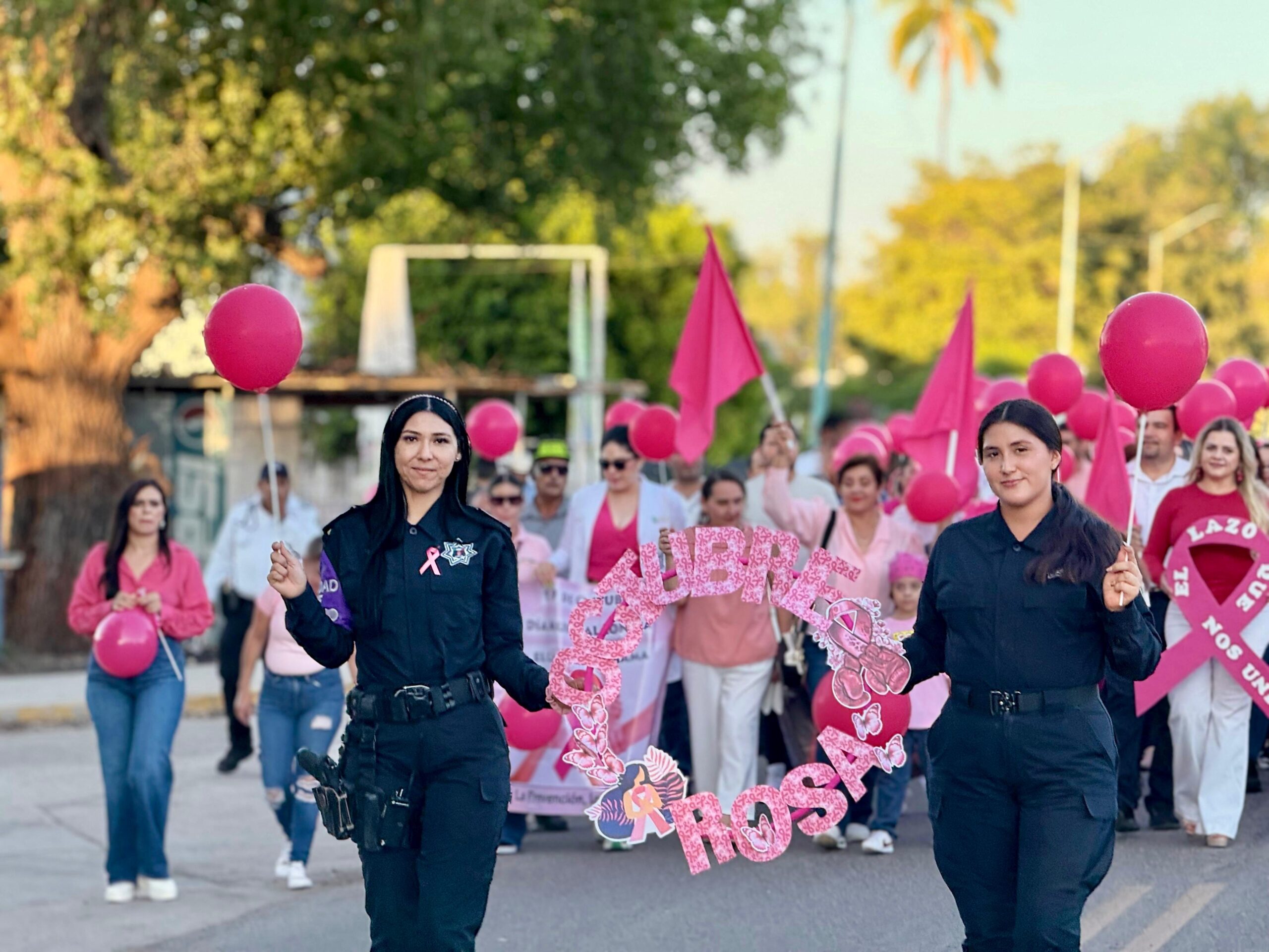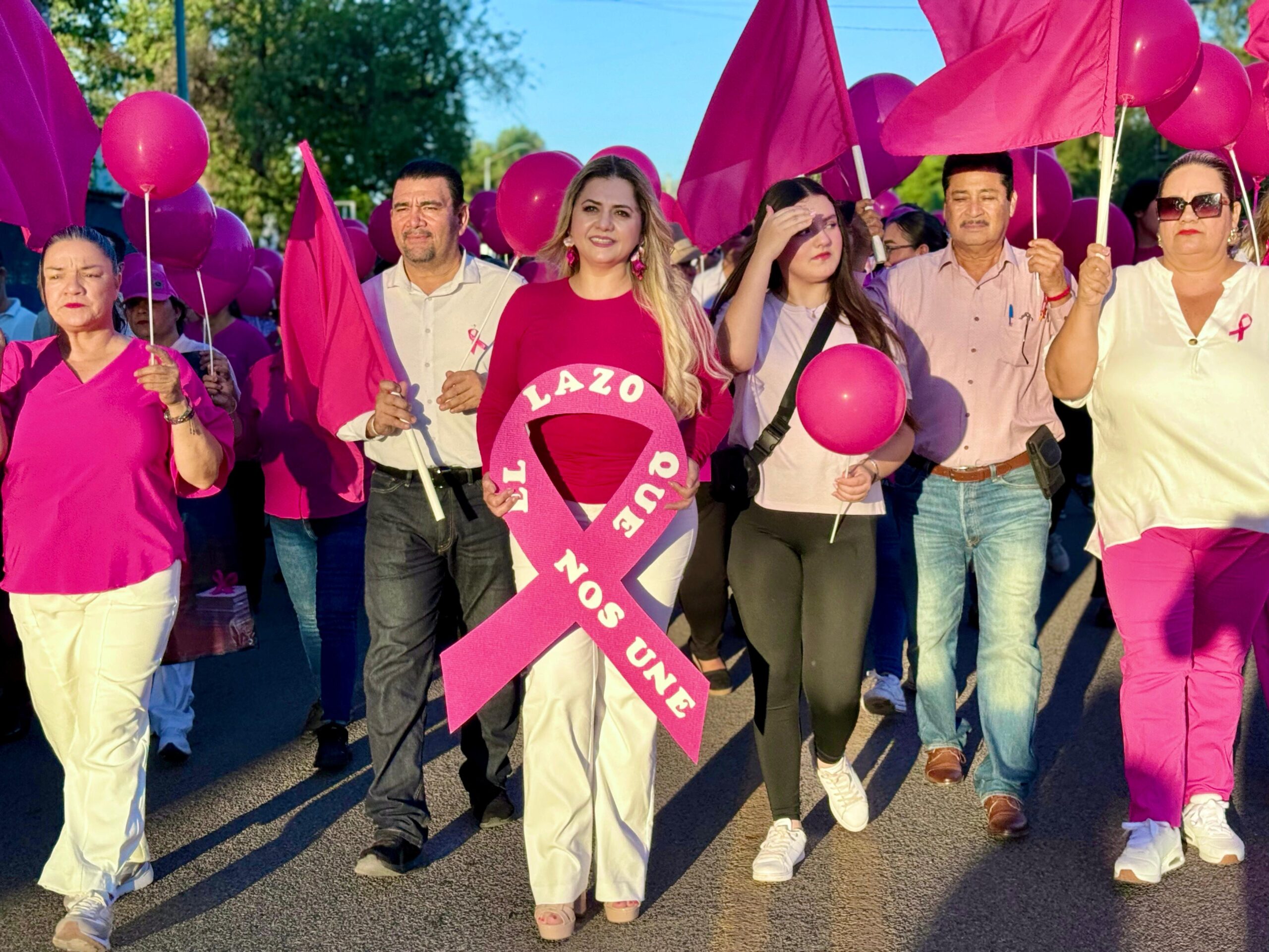 Angostura, Sin.– En el marco del Día Mundial de la Lucha contra el Cáncer de Mama, el Sistema DIF Angostura, el H. Ayuntamiento y la Dirección de Seguridad Pública llevaron a cabo una marcha conmemorativa que partió desde el Palacio Municipal hasta la Plazuela Municipal, con el objetivo de generar conciencia sobre la importancia de la detección oportuna y la prevención de esta enfermedad.