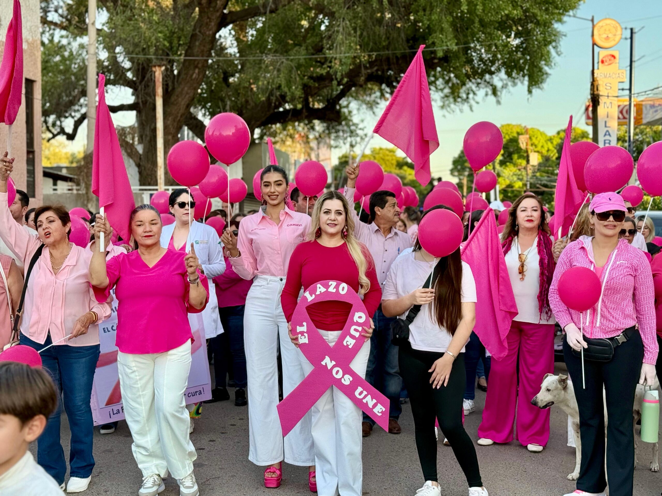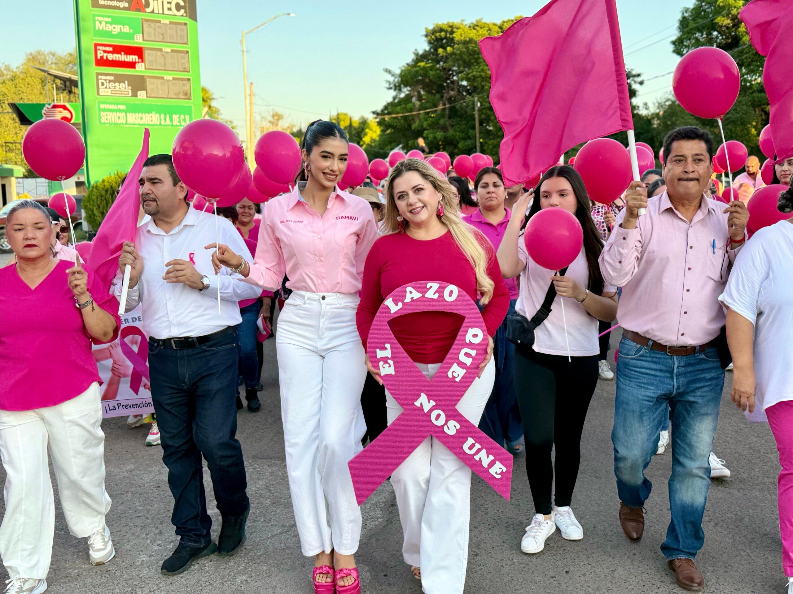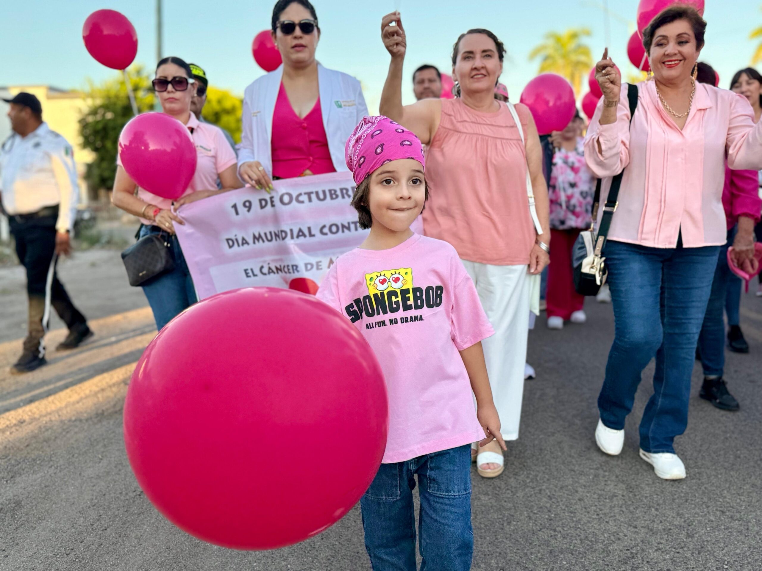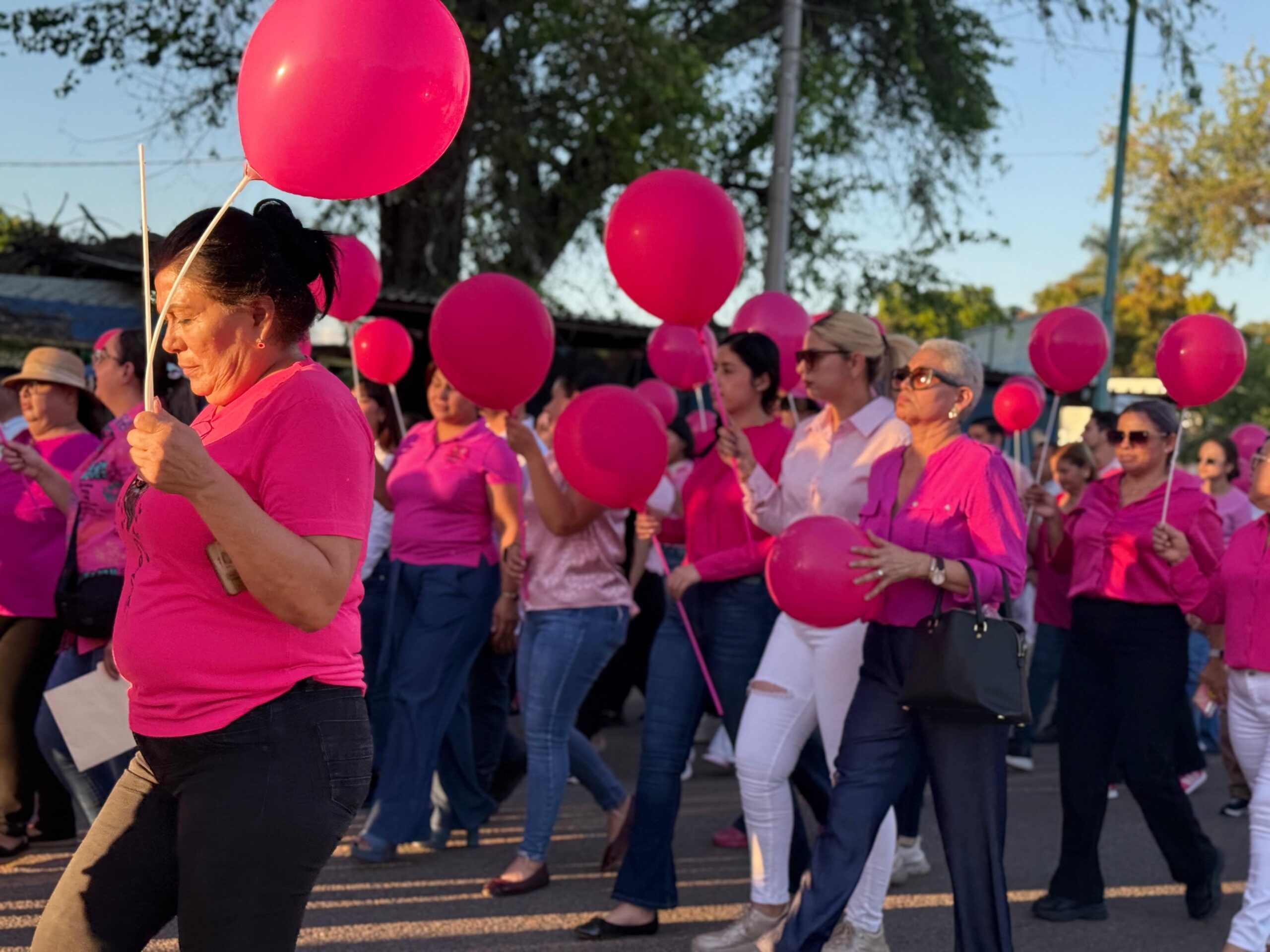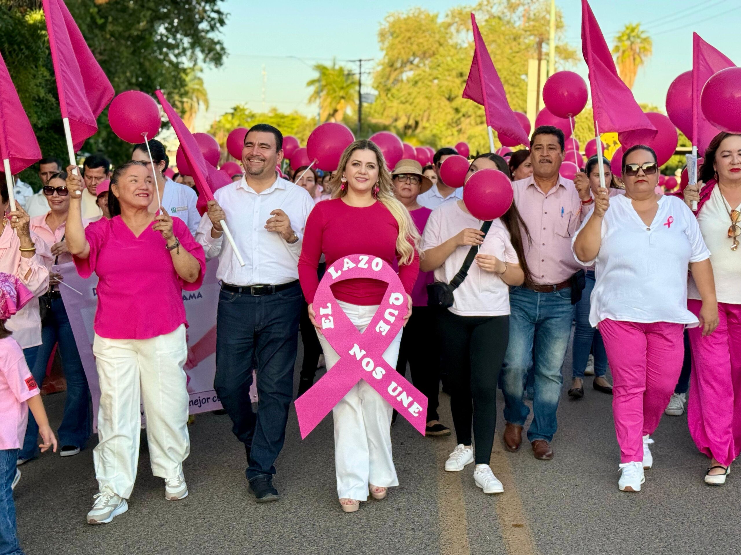 Angostura, Sin.– En el marco del Día Mundial de la Lucha contra el Cáncer de Mama, el Sistema DIF Angostura, el H. Ayuntamiento y la Dirección de Seguridad Pública llevaron a cabo una marcha conmemorativa que partió desde el Palacio Municipal hasta la Plazuela Municipal, con el objetivo de generar conciencia sobre la importancia de la detección oportuna y la prevención de esta enfermedad.