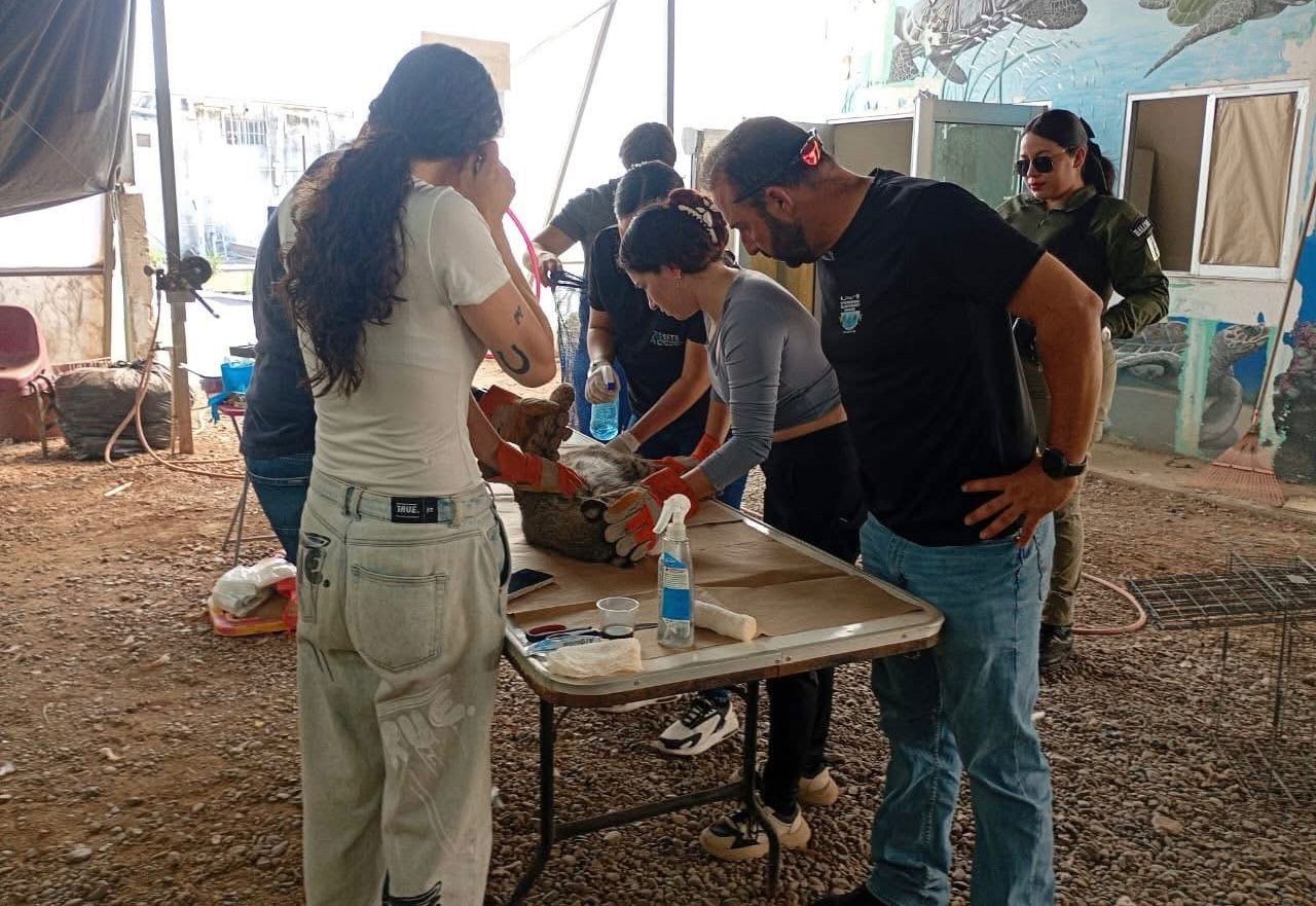 El ejemplar quedó bajo supervisión del personal especializado, quienes, tras la aplicación de sedante, realizaron los análisis correspondientes, curaciones, toma de medidas (97 centímetros), pesaje (10 kilogramos) y la colocación de un chip para su monitoreo.