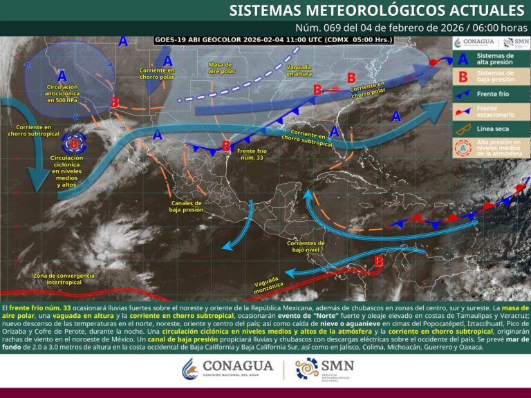 Ciudad de México.– Este día, en el Pacífico Norte, cielo parcialmente nublado a medio nublado con lluvias aisladas en Sonora y Sinaloa. Por la mañana