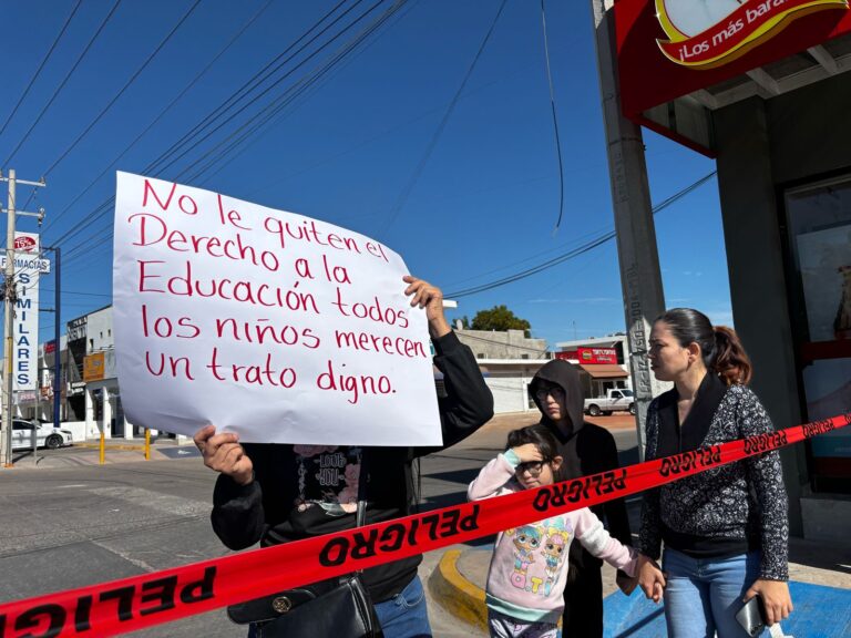 Los Mochis, Sin.- Este jueves, padres de familia de la escuela primaria Gabriel Leyva Solano se manifestaron y bloquearon la vialidad en boulevard Justicia Social