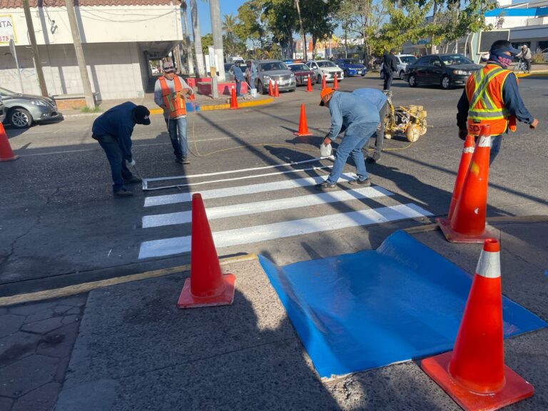 Los Mochis, Sin.- Por instrucciones del alcalde Gerardo Vargas Landeros, la secretaria de Obras Públicas inició esta mañana el “pintado de cebra” en las zonas peatonales