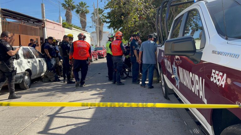 Los Mochis, Sin.- Tres personas, incluyendo a dos mujeres, quedaron atrapadas tras el colapso del techo de su vivienda en el callejón Mariano Abasolo, cerca