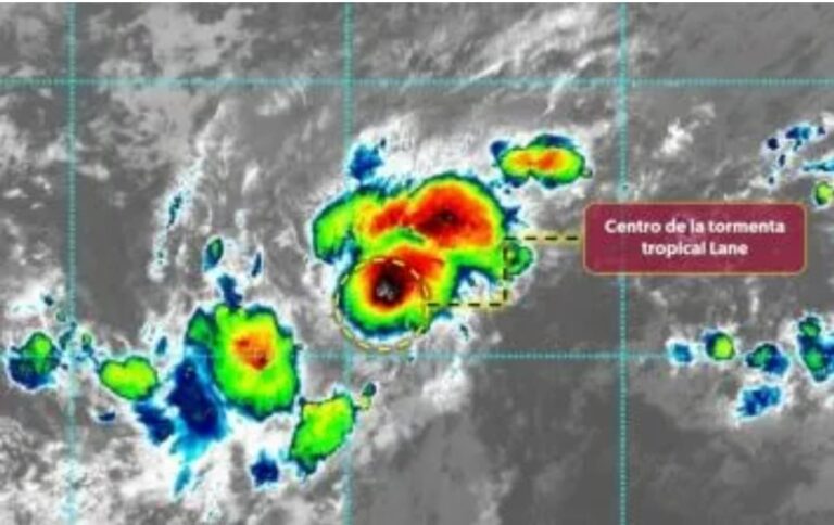 Ciudad de México.- La tormenta tropical Lane se encontraba a unos 2.455 kilómetros (1.525 millas) al oeste-suroeste del extremo sur de la península de Baja