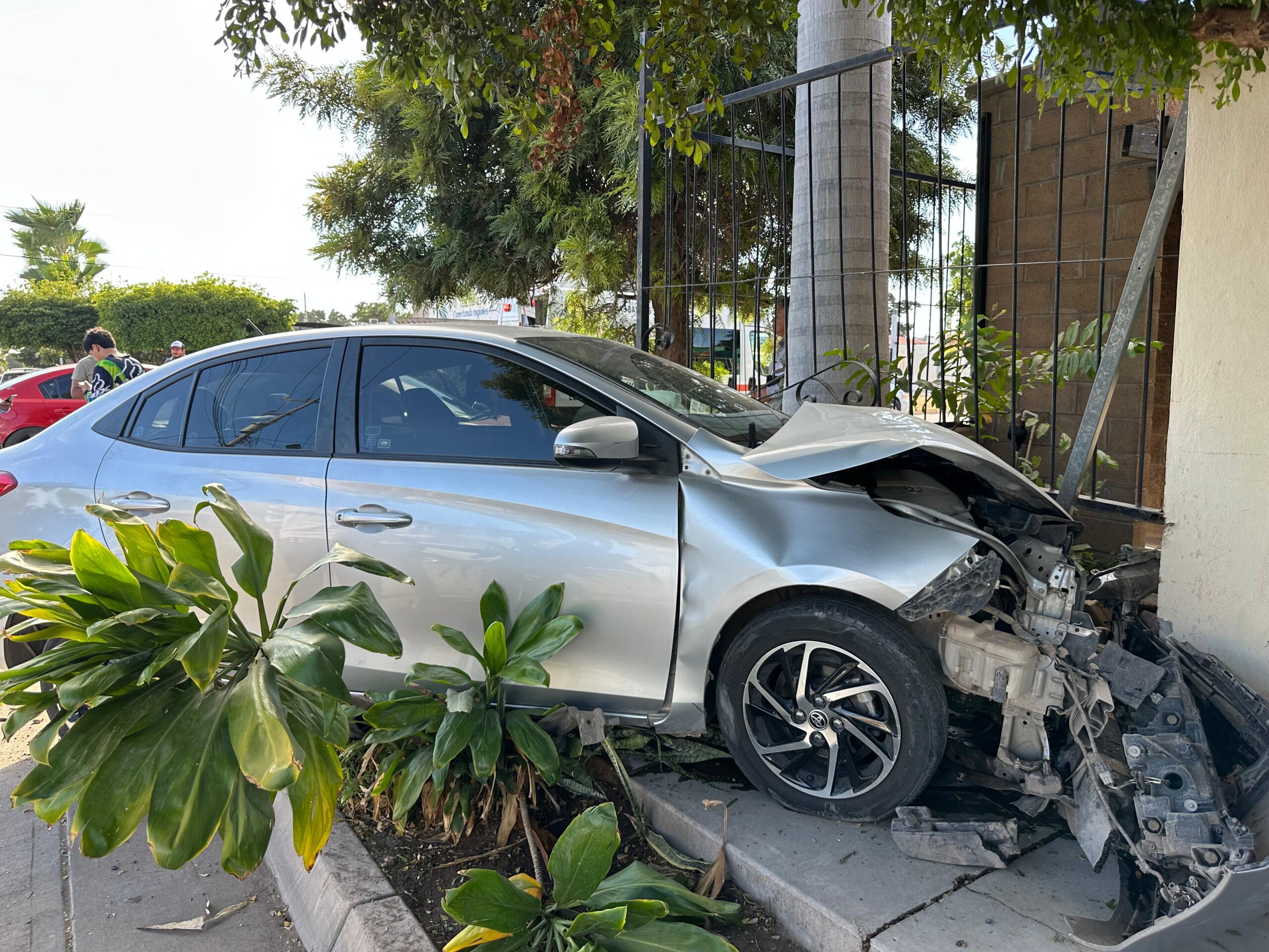 El taxi se estrelló contra la banqueta y un macetero frente a una vivienda, sufriendo daños severos en el frente, un costado y uno de sus neumáticos, además de la activación de las bolsas de aire. El Yaris, en su intento por esquivar el golpe, terminó chocando contra una barda y reja de la misma casa, derribándolas y quedando con el frente destrozado.