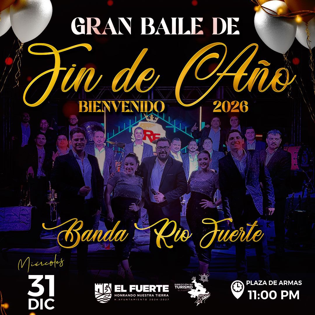 El Fuerte, Sin. – Todo está preparado para el Gran Baile de fin de año en El Fuerte, el cual se llevará a cabo el miércoles 31 de diciembre a partir de las 11:00 de la noche en la Plaza de Armas.