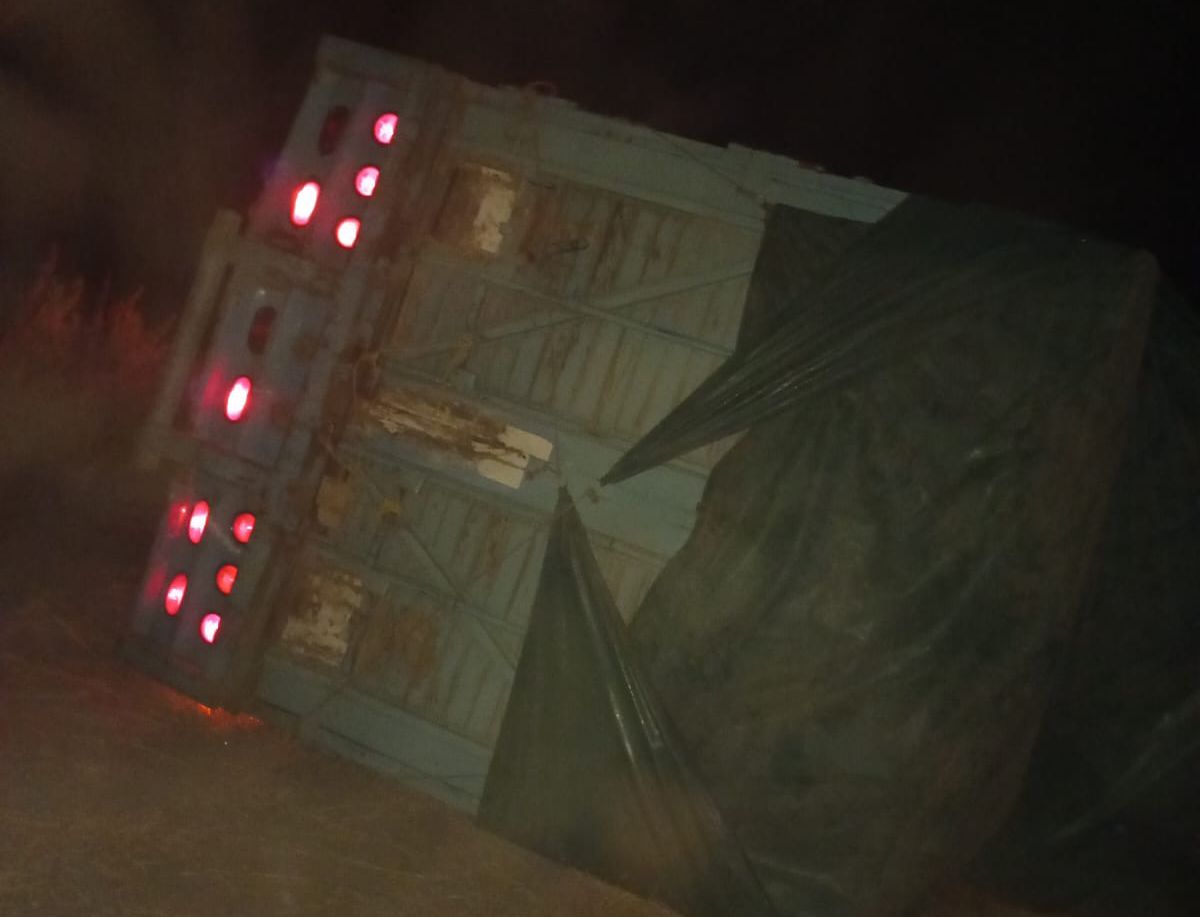 El accidente fue atendido a las 22:55 horas por elementos de la Dirección de Seguridad Ciudadana y Movilidad Sustentable. Al llegar al sitio, los agentes confirmaron el reporte, localizando un camión tipo torton marca Freightliner, color azul, modelo 1969, volcado fuera de la cinta asfáltica. La pesada unidad transportaba fertilizante al momento del percance.