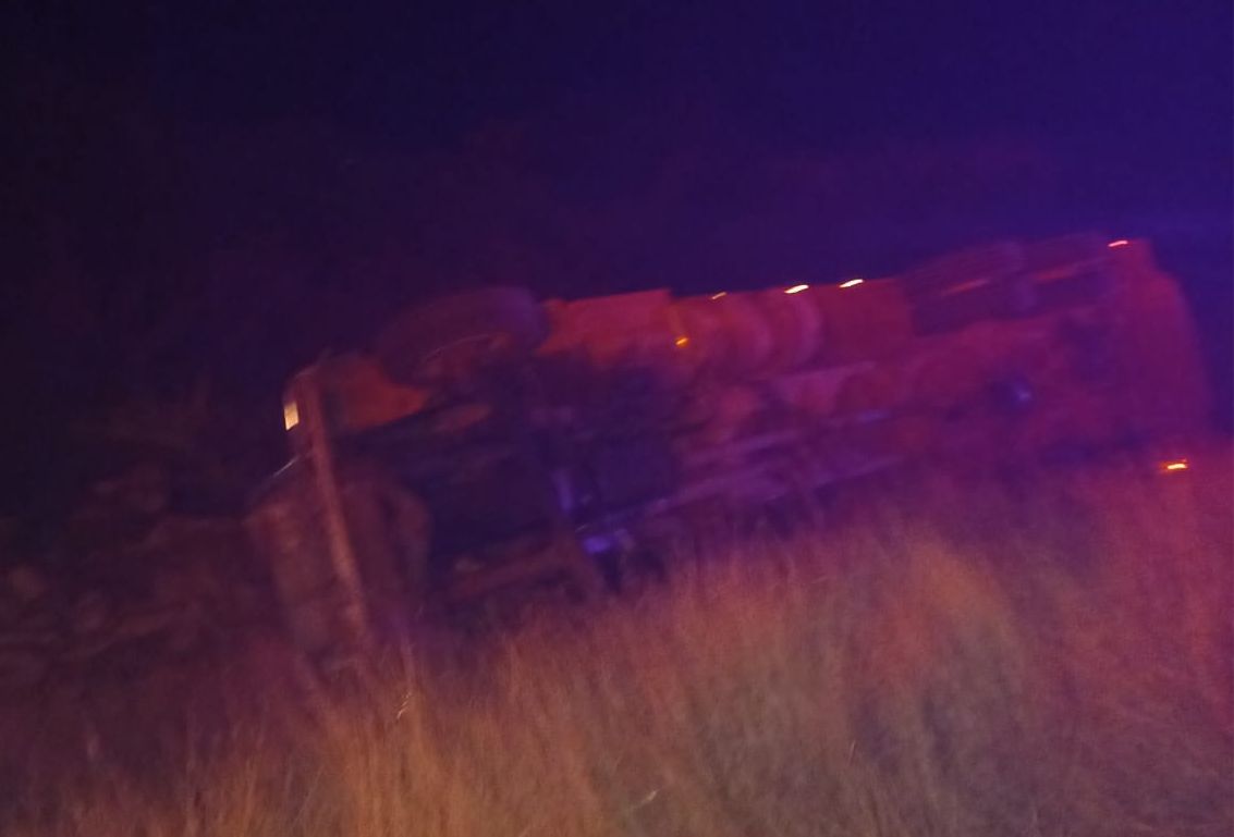 Guasave, Sin.- La noche de este miércoles, un camión tipo torton cargado con fertilizantes sufrió una salida de camino y volcadura sobre la carretera Internacional México 15, en el tramo que va de norte a sur, entre las calles 5 y 7, frente al ejido El Figueroa, perteneciente a la sindicatura de Benito Juárez, Guasave.