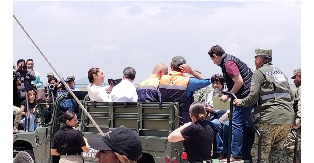 Tras su mensaje, Sheinbaum abordó un vehículo militar y realizó un recorrido de supervisión junto con Menchaca, el general Gustavo Vallejo y otros funcionarios por el tramo del kilómetro 37 más 250 de la antigua estación del ferrocarril, en el Ejido La Laguna y Jagüey de Téllez, en el municipio de Zempoala.