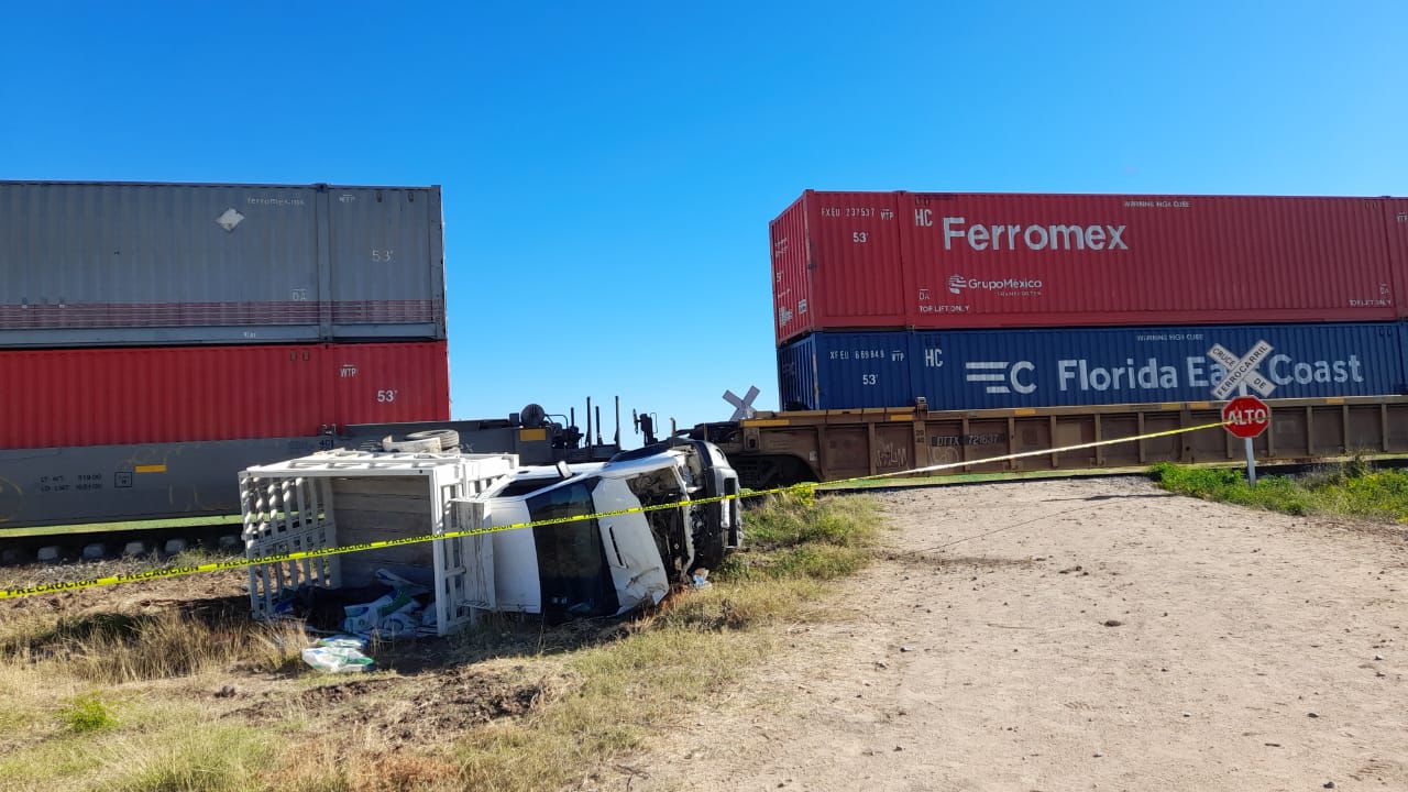Las autoridades informaron que el percance se originó presuntamente por no ceder el paso al tren, el cual circulaba con preferencia sobre las vías.