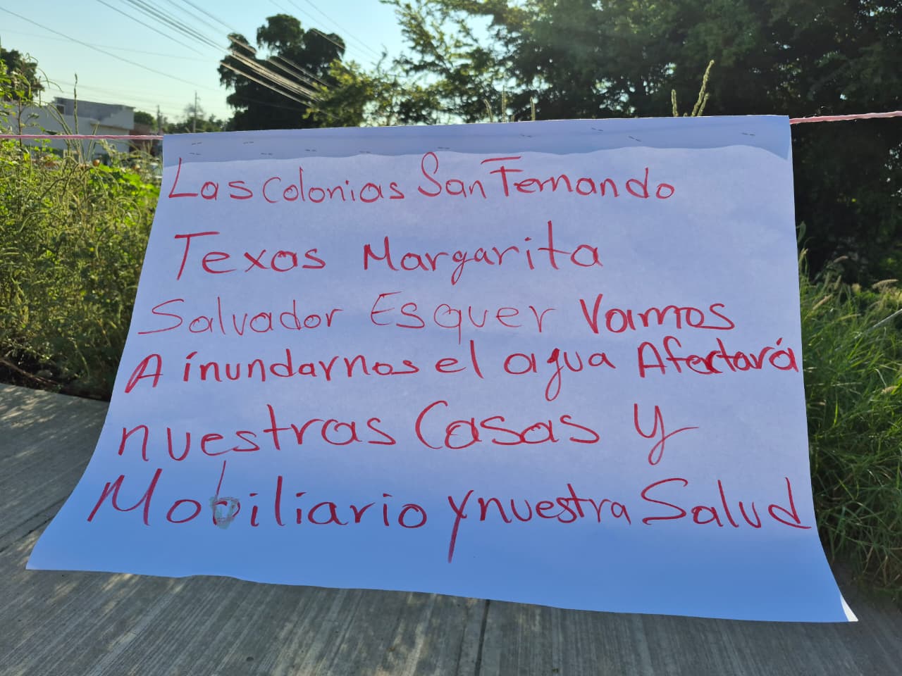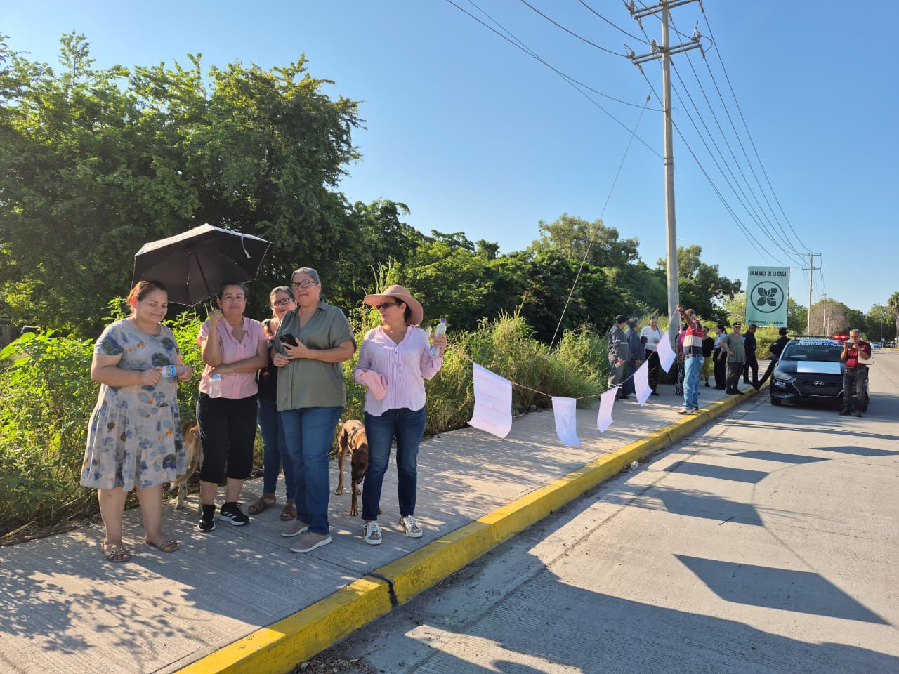 Los Mochis, Sin.- Vecinos de la colonia San Fernando se manifestaron este viernes al bloquear la circulación del bulevar Antonio Rosales en el cruce de la calle Mariano Escobedo, debido a que se pusieron a la venta lotes por la zona del canal pluvial paralelo al Rosales que aseguran eran áreas verdes.