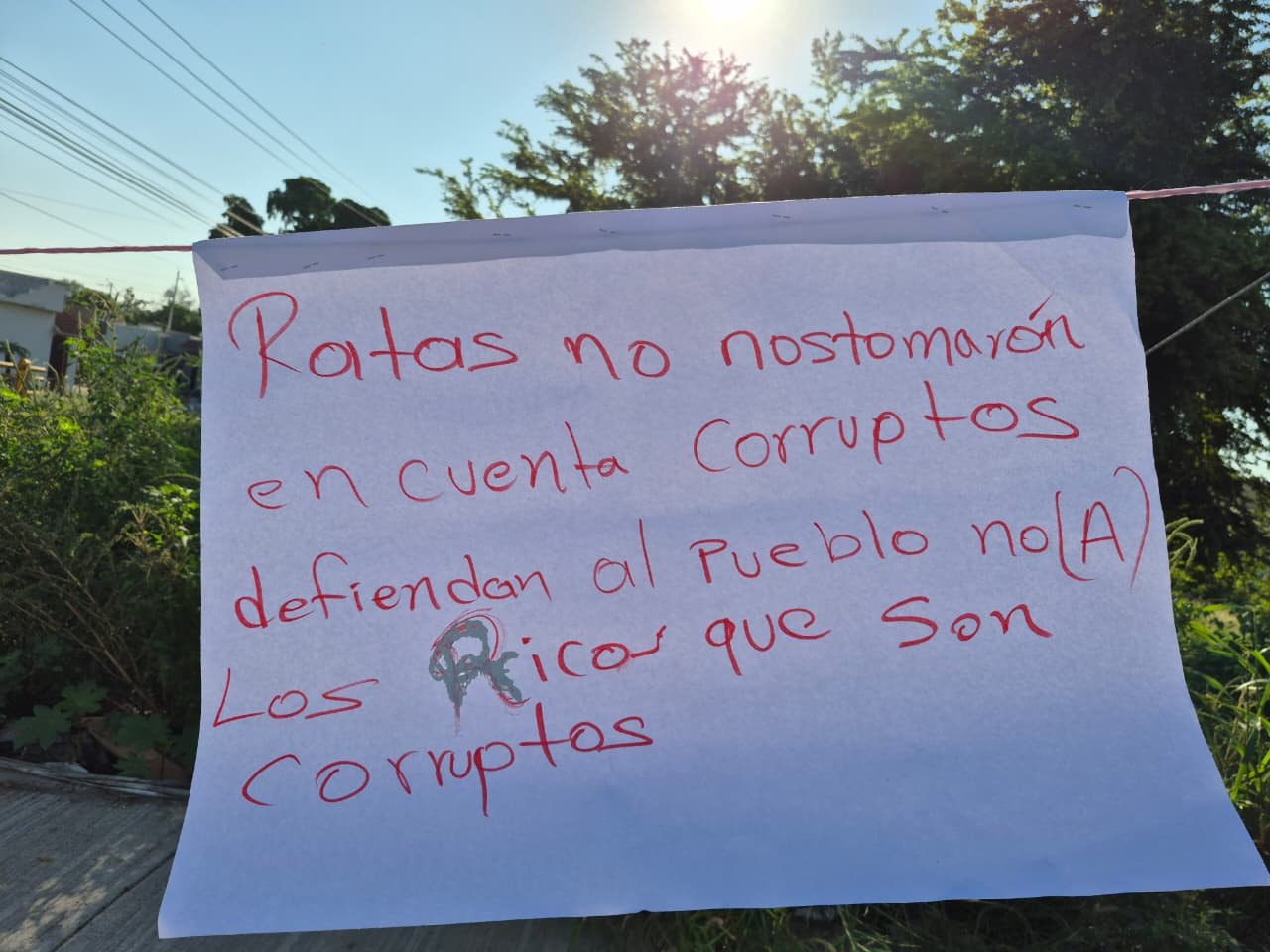 Alrededor de 30 vecinos se dieron cita para bloquear el tráfico bajo los rayos del sol, con cartulinas donde señalan como “corruptos” a funcionarios públicos y un cartel principal de gran tamaño donde el Comité de Vecinos de San Fernando exige la devolución de las áreas verdes.