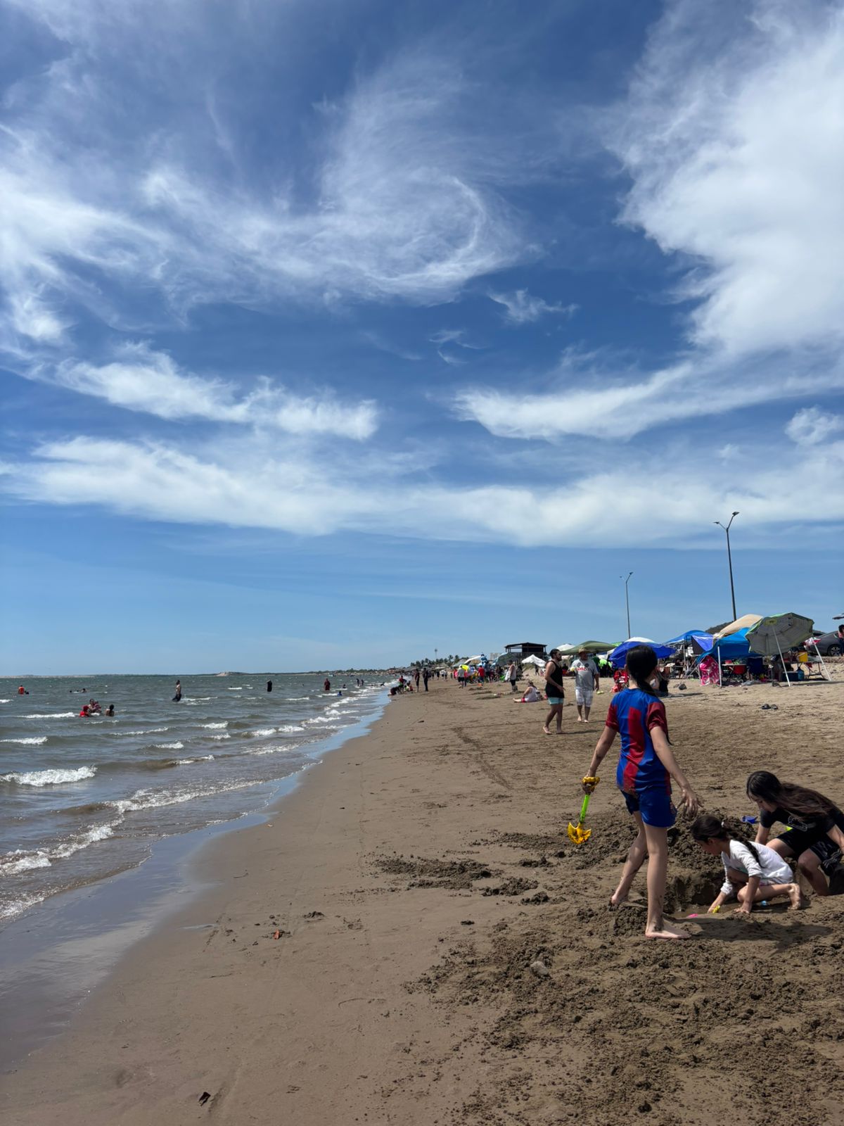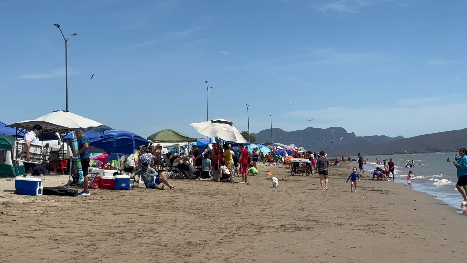 Los Mochis, Sin.- Tal como se había proyectado, este día jueves arribaron cientos y miles de personas a la playa de El Maviri para disfrutar de uno de los destinos turísticos más visitados en el municipio de Ahome, no solo familias ahomenses, sino también visitantes de otros municipios, estados de la república e incluso turistas de otros países.