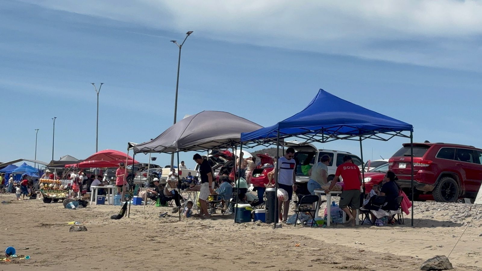Desde las 10 de la mañana inició el arribo de las familias y conforme avanzó el día fueron llegando más vehículos y camionetas cargadas con kayaks, paraguas, carpas y todo lo necesario para disfrutar de las vacaciones en familia.
