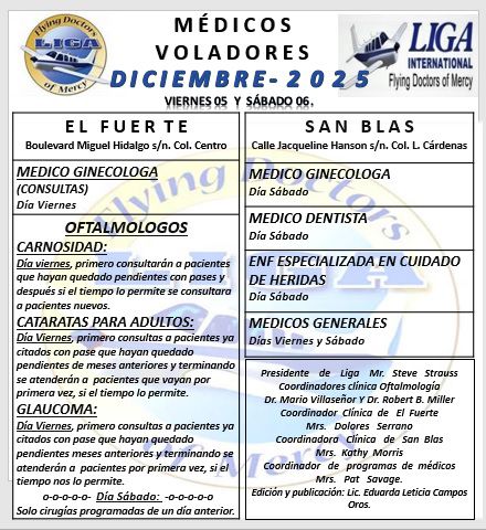 Los Mochis, Sin.- Los Médicos Voladores cumplirán con una última jornada de atención a la población en este 2025, el próximo fin de semana a San Blas y El Fuerte.