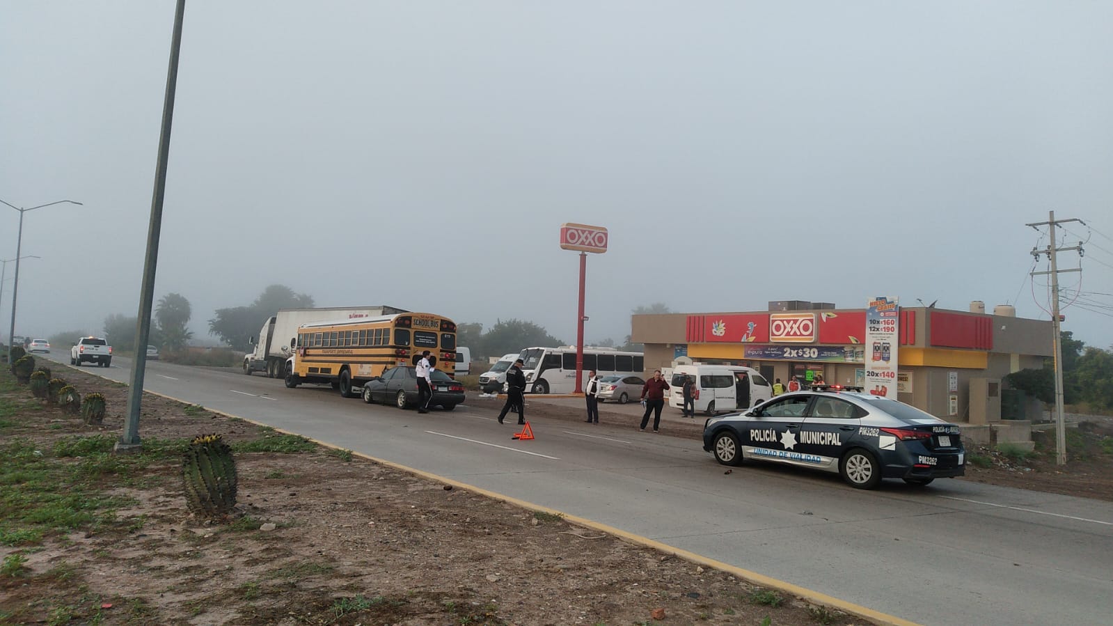 Los Mochis, Sin.- Un accidente ocurrido la mañana de este viernes 27 de febrero en la carretera estatal Los Mochis-Topolobampo dejó como saldo a un conductor lesionado, luego de que su automóvil quedara debajo de un camión de pasajeros. El percance movilizó a cuerpos de auxilio y autoridades de tránsito, quienes atendieron la emergencia en el ejido Rosendo G. Castro.