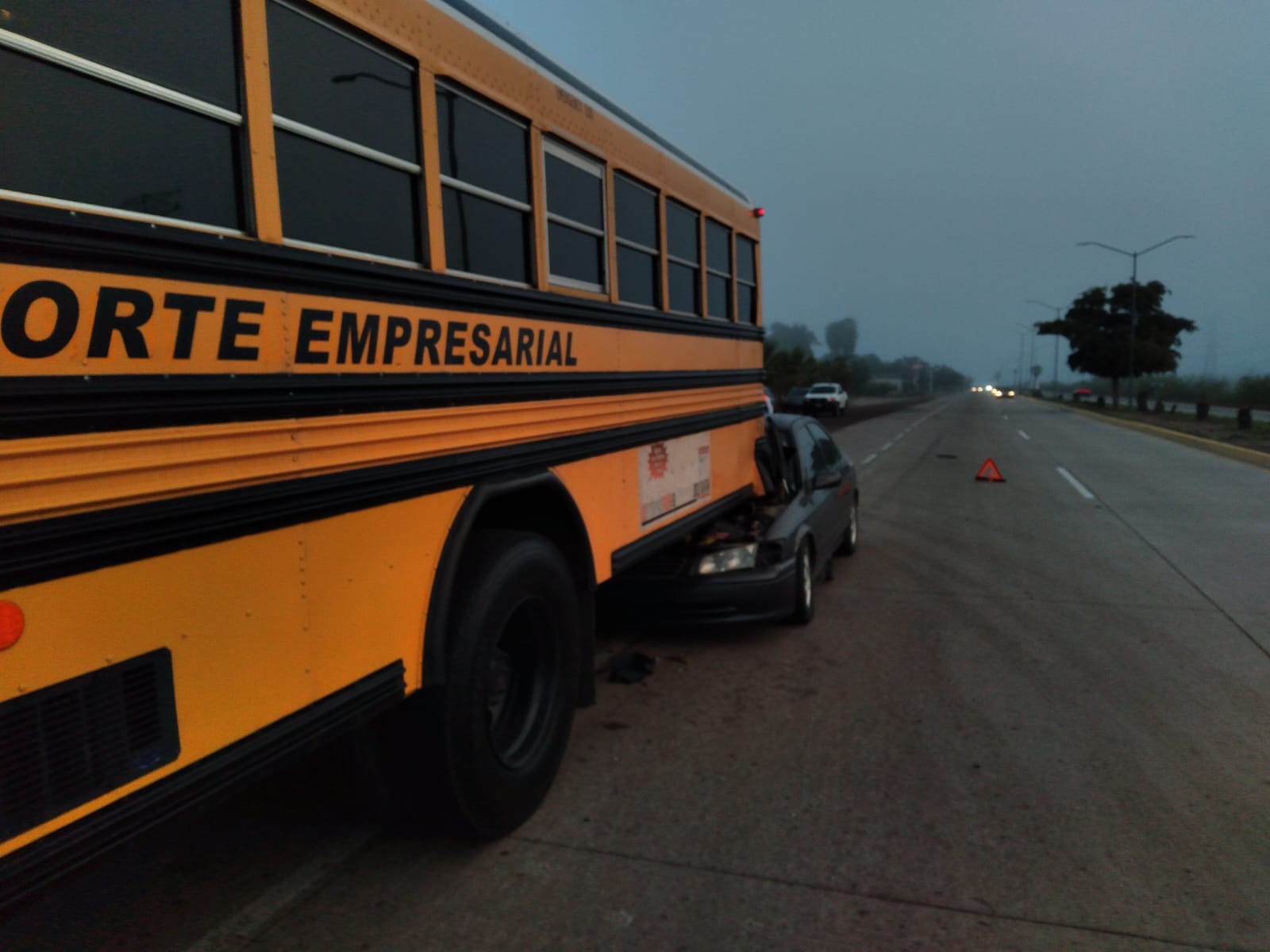 De acuerdo con los reportes, el hecho se registró alrededor de las 7:00 horas, cuando un vehículo Toyota negro que circulaba hacia el sur no logró detenerse y terminó impactándose contra un camión de transporte de personal estacionado a un costado de la carretera, junto a una tienda de conveniencia. El golpe provocó que el automóvil quedara incrustado bajo la unidad de mayor tamaño.